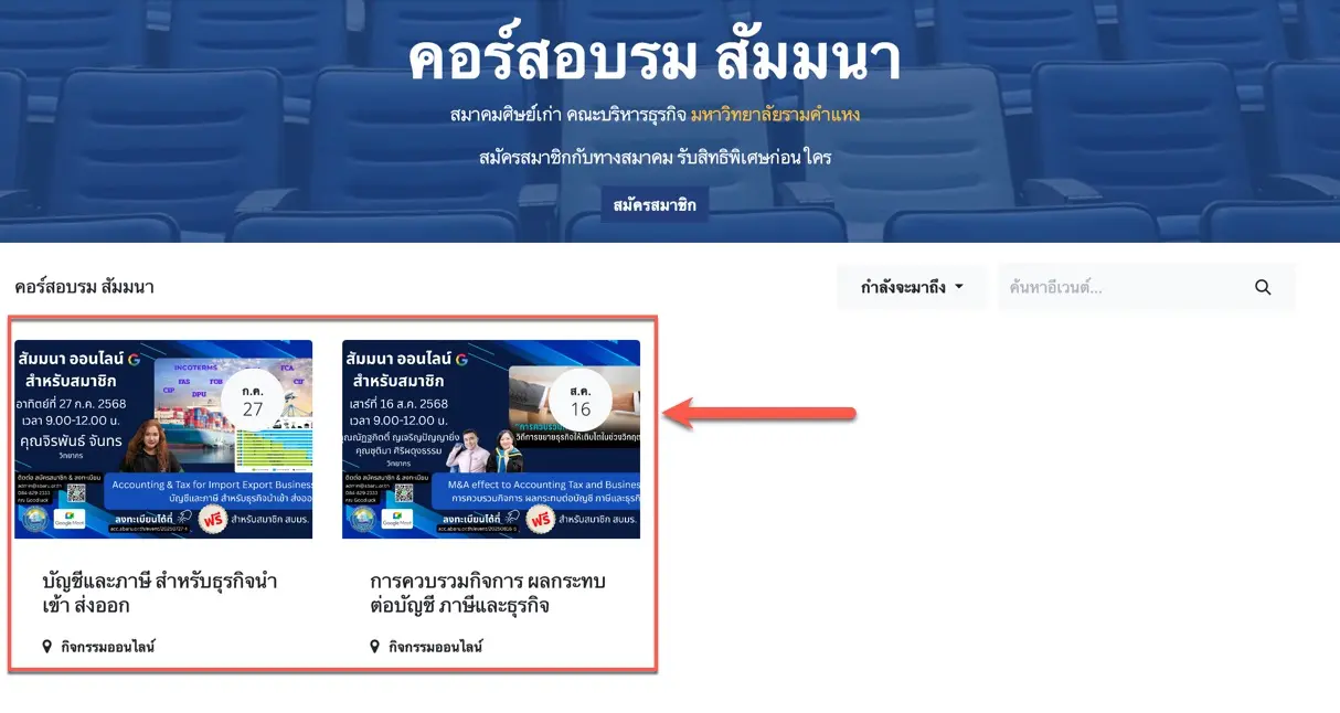 ขั้นตอนลงทะเบียน อบรมสัมมนา